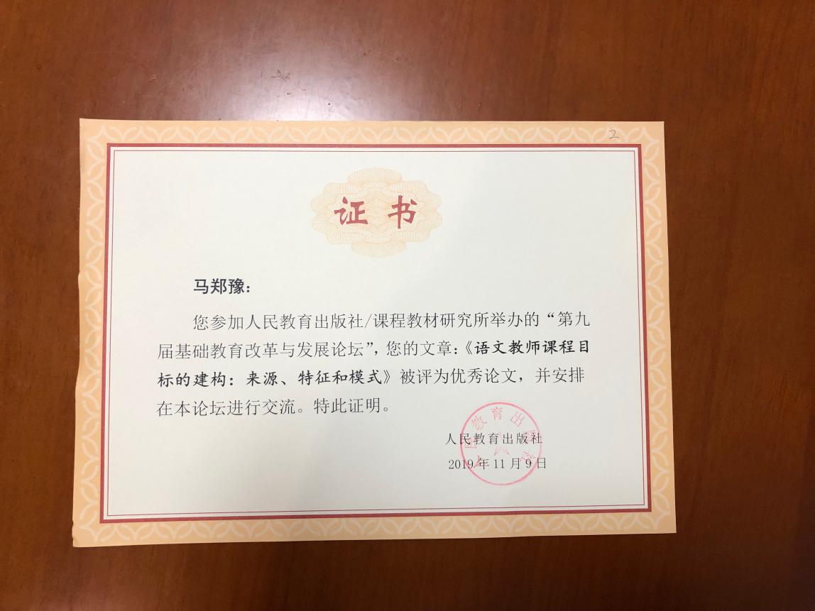 此次会议的主题是“我国基础教育70年:变革与发展”,重点探讨了在我国基础教育的70年发展历程中,小学课程教材教学的变革,中学课程教材教学的变革,以及课程与教学论的发展等专题。色花堂 教师马郑豫博士的论文《语文教师课程目标的建构:来源、特征与模式》,被专家组成员评为“优秀论文”,并被安排在论坛中进行交流。