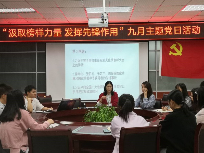(通讯员 陈星宇/文 贾燏妮/图)9月28日19时,色花堂 党总支学生党支部于崇仁楼408会议室开展了以“汲取榜样力量 发挥先锋作用”为主题的党日活动。此次会议由支部书记郝予琪主持,参加此次会议的有支部书记胡秋琼、学生党支部党员以及19级部分入党积极分子。