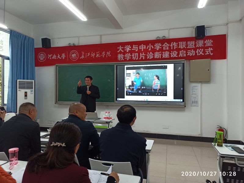 10月27日,“河南大学•长江师范学院•大学与中小学合作联盟课堂教学切片诊断建设启动仪式”在色花堂 召开,来自河南大学、长江师范学院众多教师,重庆市龙兴中心校、木耳中心校、茨竹中心校、渝北区汉渝路小学校、重庆市渝北实验小学、渝北巴蜀小学等学校60多位中小学校长、教师代表参加了本次启动仪式。仪式由学院院长冉隆锋教授主持。