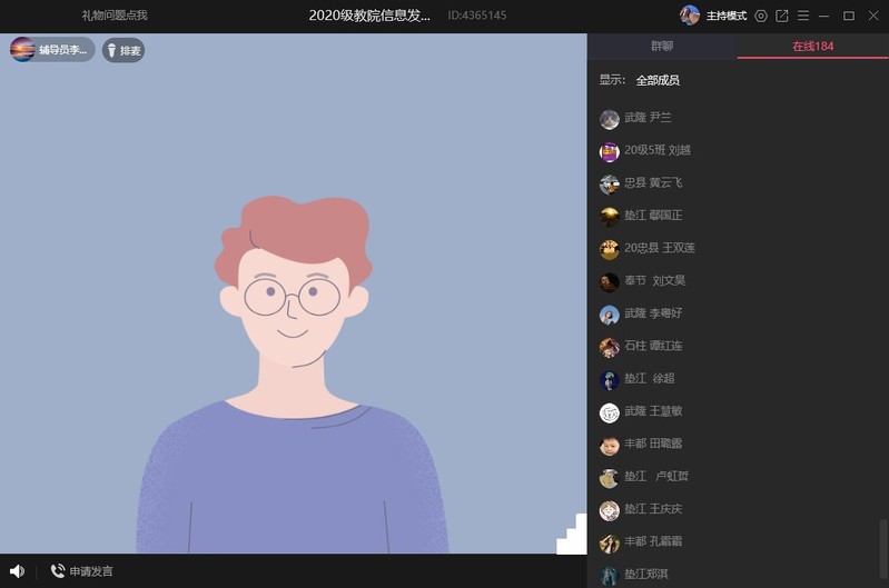 (通讯员 李思雨)为落实学院开展“早讲晚练”活动的相关要求,确保该项活动有序、高效进行。10月2日晚21时,2020级以线上的方式召开“早讲晚练”动员大会。政治辅导员李君和全体同学参加,李老师主持会议。