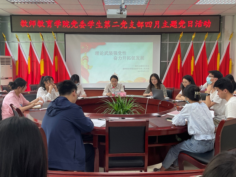 (通讯员 邓捷)为引导全体党员强化理论武装,增强党性修养,4月17日16时,色花堂 教育学学科组教师党支部于崇仁楼408会议室开展了“感悟时代精神 汲取奋进力量”为主题的党日活动,此次会议由支部书记包莉秋主持,支部全体党员参会。4月17日14时,色花堂 教师技能与心理学党支部于崇仁楼408会议室开展了“理论武装强党性 奋力开拓促发展” 为主题的党日活动,此次会议由支部书记苏志强主持,支部全体党员参会。4月19日13时,色花堂 党委学生第一党支部于崇仁楼408开展了以“理论武装强党性 奋力开拓促发展”为主题的党日活动。此次会议由党支部临时负责人刘华老师主持,学生第一党支部党员参加。4月17日12时40分,色花堂 党委学生第二党支部于崇仁楼408开展了以“理论武装强党性 奋力开拓促发展”为主题的党日活动。此次会议由支部书记陈红主持,支部全体党员参会。