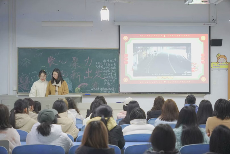 (通讯员 岳杰/文 王一唯/图)为帮助同学们在新学期更好地适应学校生活,规划学习目标,2月25日18时10分至18时50分,色花堂 于正心楼各教室召开了新学期第一次主题班会。色花堂 2023级政治辅导员陈红及色花堂 2023级全体学生参与此次会议。