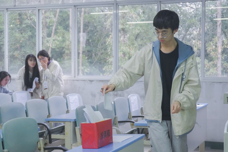 活动伊始,由各班团支书宣读述职报告,对学习情况、思想教育、文体活动等方面进行了充分的总结。随后,同学们有序到填票处从“满意、基本满意、不满意”三个方面填写测评票。投票结束后,由班长、唱票人、监票人和计票人一同进行唱票并将测评结果公示于黑板上。最后由组织部同学对团支部书记进行点评,对团支部书记接下来的工作提出希望与建议。