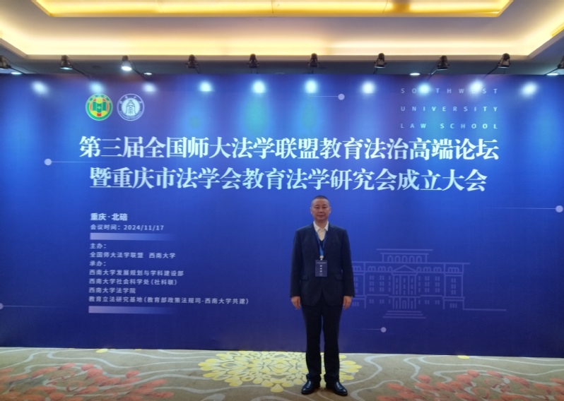 教授暨重庆市人文社科重点研究基地西南乡村教育创新发展研究中心研究员向帮华受邀担任了本次会议教育法治及法治教育相关主题的学术报告平行论坛主持人。向帮华教授的当选也体现了我校教育管理学科领域教育法学(教育政策法规)等相关方向学科建设研究成果的良好影响力。
