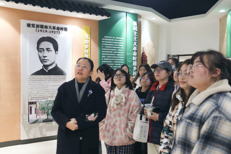 邱书记将理论与实践相结合,在回顾建校背景、发展过程及重要成就后,带领同学们参观乡村教育馆,通过邱书记的生动讲解,同学们对学校在乡村教育方面的历史和贡献更加了解。同时通过分享优秀校友周晓琳、石君、唐杰、余云龙的事迹,邱书记强调了教育工作者在乡村教育中的重要作用,并鼓励同学们以优优秀校友为榜样,努力学习,增强本领,报效社会。