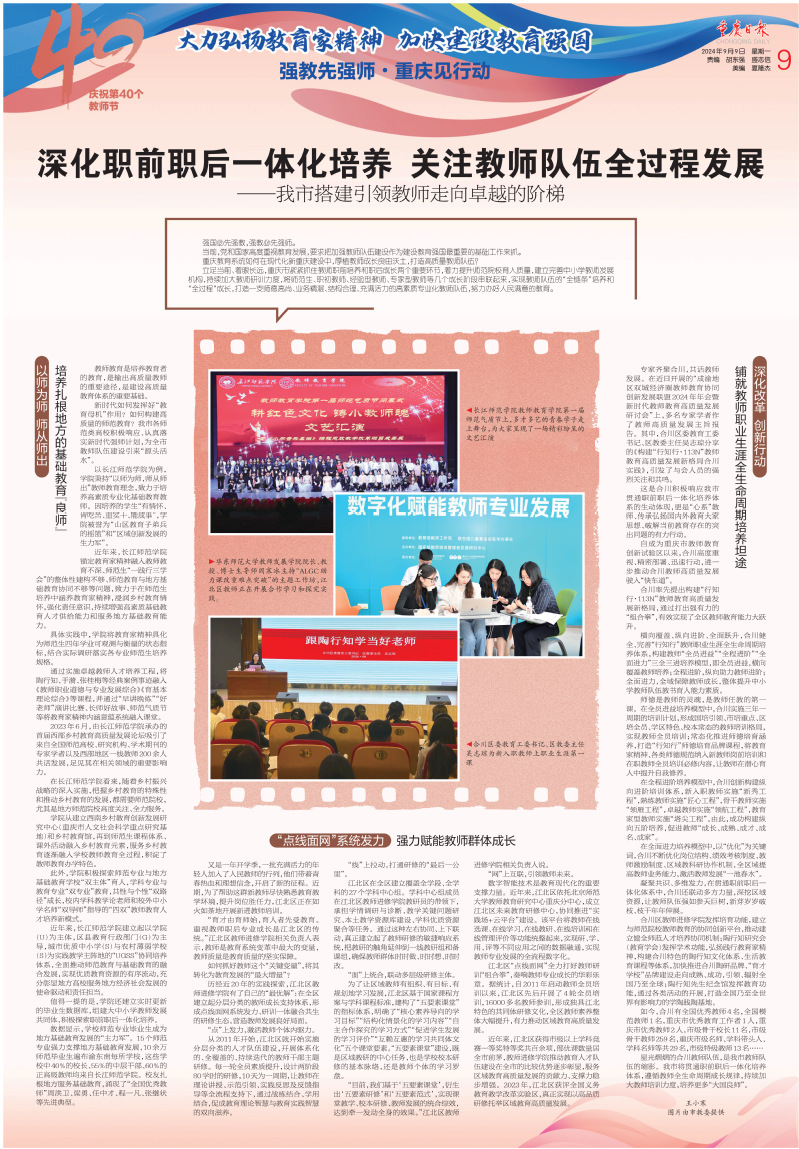 《重庆日报》:深化职前职后一体化培养 关注教师队伍全过程发展