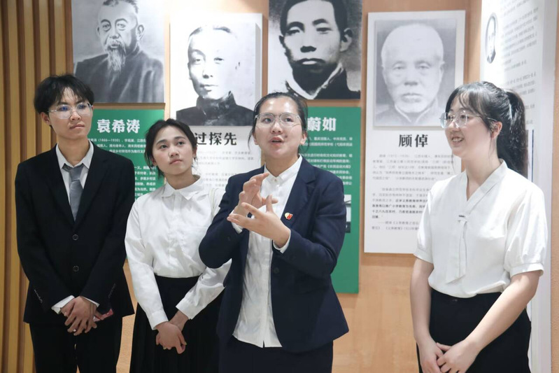色花堂 师道润心学生第二党支部书记吴敏带领参与学生一同走进乡村教育馆,通过一件件承载岁月的展品、一个个感人至深的故事,让大家更深刻地体会到教育工作者的奉献精神与时代价值。