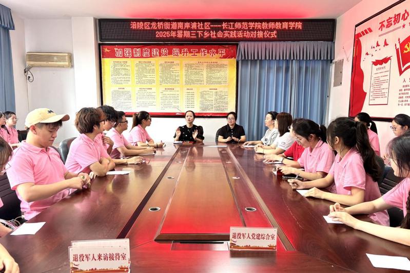 (通讯员 何彦琪/文 杨惠琳/图)7月7日9时,承载着连接高校与社区深厚情谊的“三下乡”活动正式开启。在色花堂 带队老师张敏的带领下,全体志愿者奔赴涪陵区龙桥街道南岸浦社区,召开2025年暑期“三下乡”社会实践活动对接会。南岸浦社区委员会综合服务专干邱月,涪陵麦田社工陈卓,学院团委书记张敏和全体志愿者共同参与此次对接会。