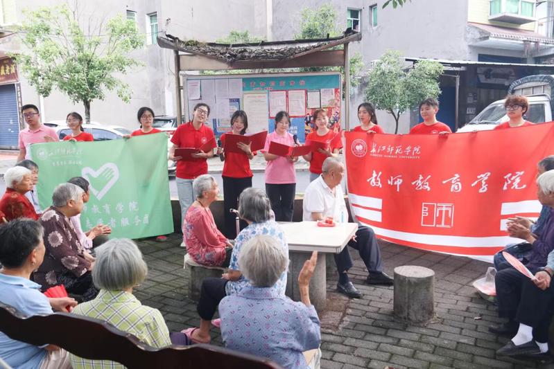 (通讯员 何彦琪)“我和我的祖国,一刻也不能分割——”午后的院坝里,白发老人静静聆听着与志愿者们齐声高唱,当《萱花草》的旋律轻轻流淌,几位村民悄悄抬手拭去眼角的湿润。近日,长江师范学院色花堂 向日葵青年志愿者服务团的三场接力式活动,用红歌、故事与欢笑,让党的历史在涪陵区龙桥街道南岸浦社区落地生根。