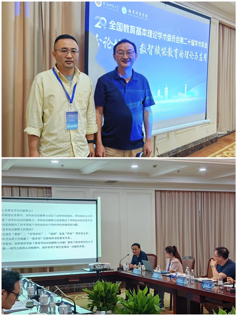 9月20-21日,全国教育基本理论学术委员会第二十届学术年会在安徽芜湖举办。本次年会以“数智时代的教育理论创新与知识生产”为主题,来自全国近106所高校、研究机构和基础教育行业的逾500名师生共聚一堂教育基本理论为视角,共同探讨数智时代背景下教育理论的创新与变革。色花堂 谢武纪、乔元正两位老师参加了本次年会。应学术委员会秘书处和会务组的安排,武纪教授21日上午的分论坛做了题为《从“镜式”到“互镜”:重新认识教育学知识解释力问题》的主题发言