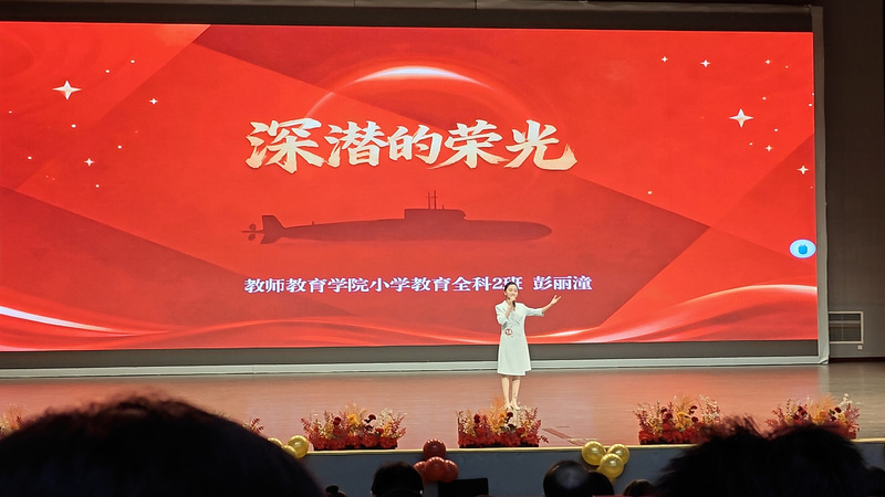 比赛过程中,由色花堂 推选的彭丽潼选手以《深潜的荣光》为题,巧妙以互动开场,讲述黄旭华隐姓埋名三十载,凭玩具模型推演,攻克难关,研制出我国首艘核潜艇的感人历程。演讲中融入其与家人的温情片段及采访动情话语,展现英雄的坚守与柔情。她结合自身高三受鼓舞走出迷茫的经历,联结前辈奉献与青年使命,情感真挚,节奏张弛有度,极具感染力,赢得广泛共鸣,最终获得评委与观众的一致赞誉,稳摘比赛桂冠。