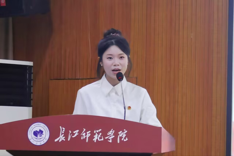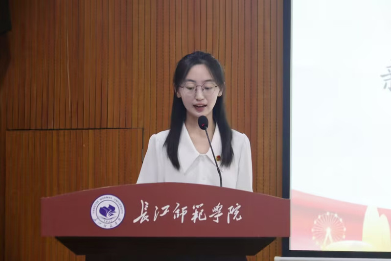 新学员彭丽潼号召学员们在理论学习中锤炼思想,在社会实践中练就本领,在时代召唤中勇担使命。