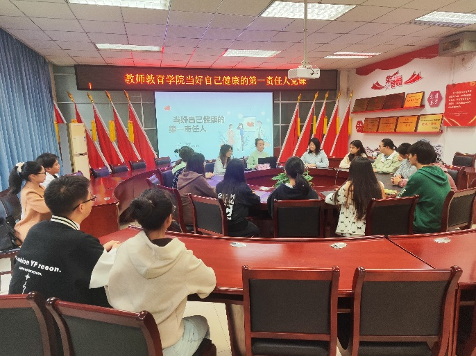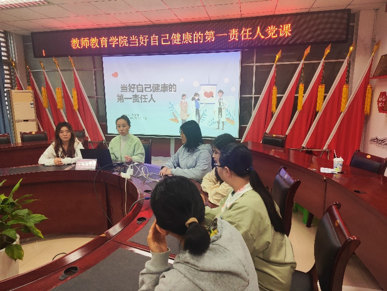 (通讯员 郎芮)为了提高学生的健康意识和自我管理能力。2023年11月17日,长江师范学院色花堂 郝予琪老师于崇仁楼408开展了一场以“自我健康管理”为主题的党课。
