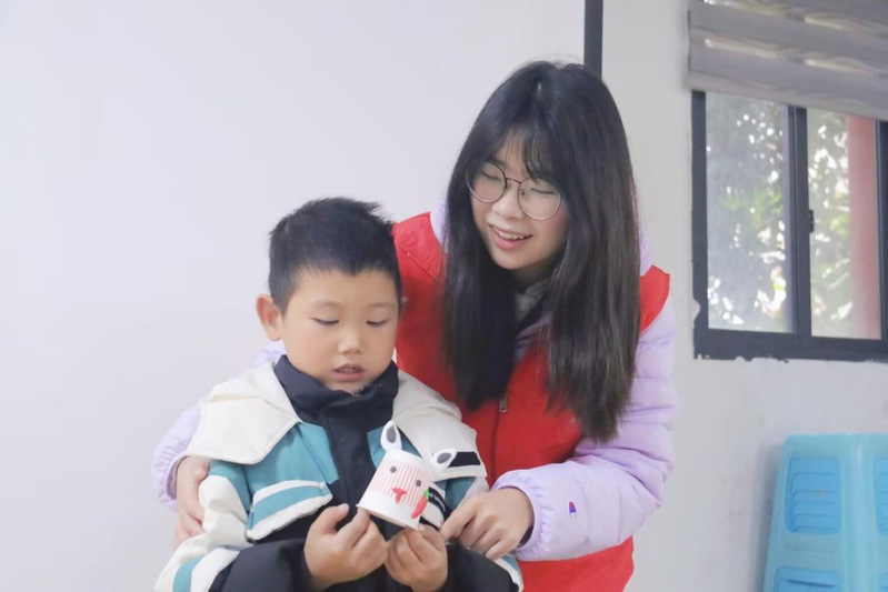 生肖手工课上,小先生讲解生肖文化知识,引导孩子们细致观察生肖动物特点,示范黏土纸杯制作技巧。孩子们实践热情高涨,发挥奇思妙想创作专属生肖萌宠。小先生耐心指导答疑,协助解决制作难题。作品完成后,孩子们兴奋地分享自己的生肖萌宠,现场互动频繁、笑语不断。