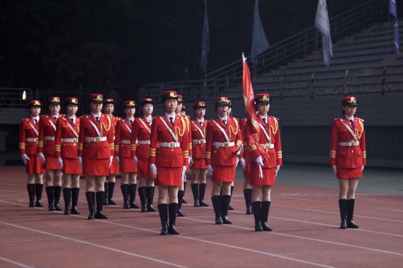 清晨,天蒙蒙亮,国旗护卫队步伐铿锵,护卫国旗入场。在雄壮国歌声中,五星红旗冉冉升起。全体师生庄严肃立、齐唱国歌,向国旗致以崇高注目礼。