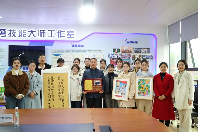 (通讯员 廖秤瑛)12月26日,应马克思主义学院邀约,色花堂 专业教师孙巧悦带领教院学子,走进霍加勇药物制剂工市级首席技能大师工作室,开展《小学美术基础》课程思政实践教学活动,将创作的2幅绘画作品和1幅书法作品赠送给劳模,并与全国岗位学雷锋标兵霍加勇展开面对面访谈,学习劳模精神、工匠精神。