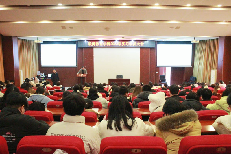 熊院长带领大家学习《新时代中小学教师职业行为十项准则》,要求同学们在实习中以准则约束自己的行为。他回忆自身的实习成长历程,强调实习是专业精进的关键契机,勉励大家正视实习中的困难挑战,向一线教师虚心求教,坚守教育初心、扛起责任担当,强化师德师风涵养、注重实习日常工作和生活安全,在脚踏实地的实践中锤炼过硬本领,实现自我成长突破。