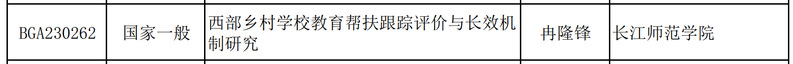 2023年8月28日,全国教育科学“十四五”规划2023年度课题立项名单公布,学院党委书记兼院长冉隆锋教授申报的“西部乡村学校教育帮...