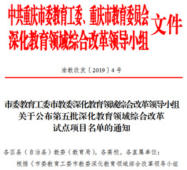 近日,中共重庆市委教育工委、重庆市教育委员会深化教育领域综合改革领导小组下发《关于公布第五批深化教育领域综合改革试点项目...