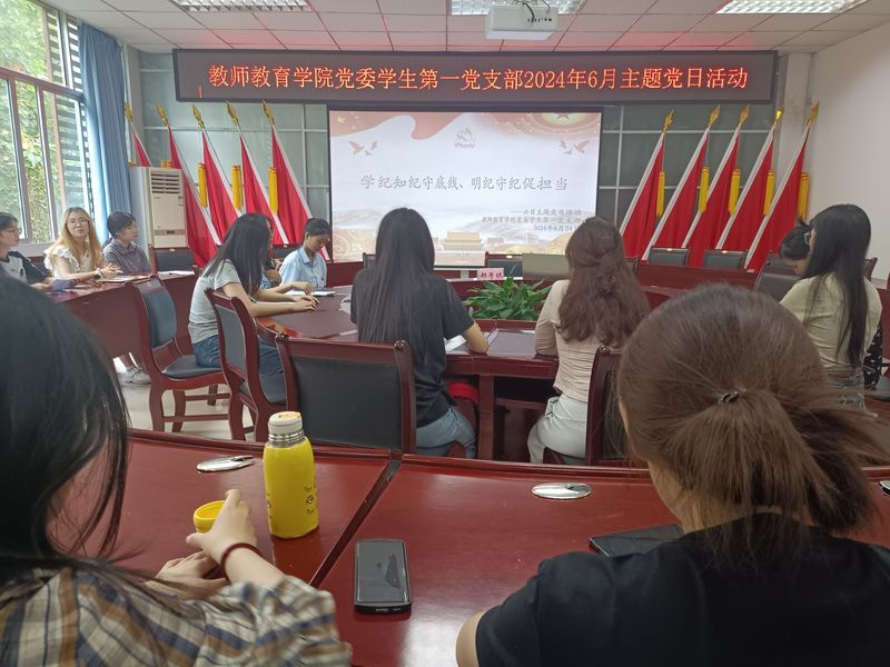 (通讯员李佳鲜)为了提高党员党性修养和增强党组织的凝聚力,6月24日12时30分,色花堂 党委学生第一党支部于崇仁楼408会议室开展了以“学纪知纪守底线、明纪守纪促担当”为主题的党日活动。此次会议由党支部书记郝予琪同志主持,学生第一党支部党员参加。6月25日12:30,色花堂 党委学生第二党支部于崇仁楼408开展了以“学纪知纪守底线 明纪守纪促担当”为主题的党日活动。此次会议由支部书记吴敏主持,支部全体党员参会...
