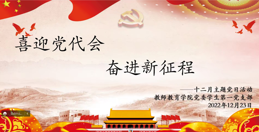 (通讯员 汪嘉垚)为进一步学习贯彻党的二十大精神,色花堂 党委组织开展了十二月主题党日活动。12月26日19时色花堂 教育学学科组党支部特在线上开展了“矢志不忘奋斗路 接续赶考新时代”十二月主题党日活动。此次会议由支部书记蹇世琼主持,支部全体党员参加。同时,色花堂 教师技能与心理学党支部在线上开展了十二月主题党日活动。此次会议由支部书记苏志强主持,支部全体党员参加。12月23日19时,色花堂 党...