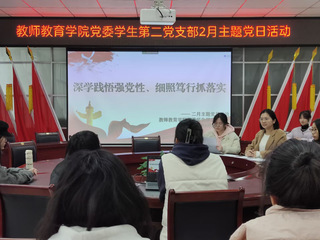 (通讯员 邓捷)为引导全体党员强化理论武装,增强党性修养,4月17日16时,色花堂 教育学学科组教师党支部于崇仁楼408会议室开展了“感悟时代精神 汲取奋进力量”为主题的党日活动,此次会议由支部书记包莉秋主持,支部全体党员参会。4月17日14时,色花堂 教师技能与心理学党支部于崇仁楼408会议室开展了“理论武装强党性 奋力开拓促发展” 为主题的党日活动,此次会议由支部书记苏志强主持,支部全体党员参会。4月19日13...