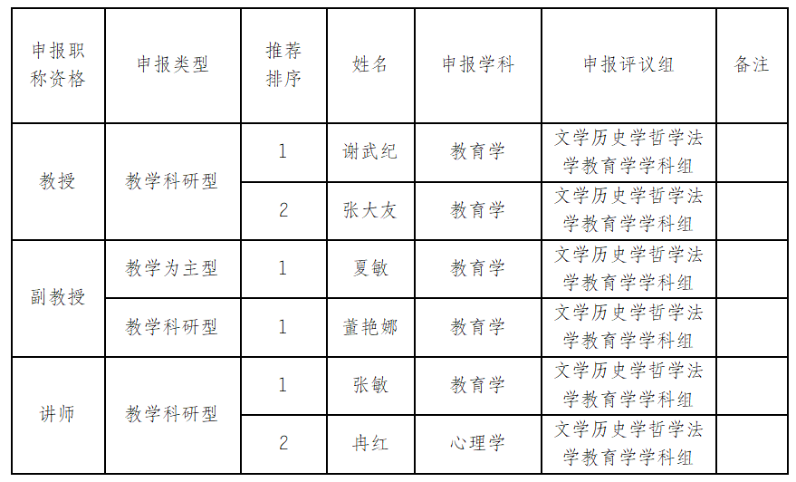 全体教职工:经过个人申报(11月11日)、专家组会议评议(11月19日),党政联席会审议(11月19日),现将本部门2024年中高级职称...