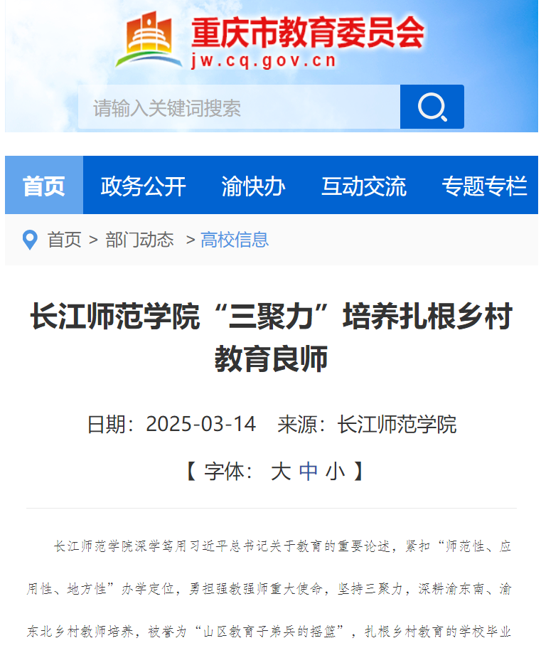 重庆市教育委员会:长江师范学院“三聚力”培养扎根乡村教育良师